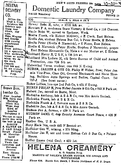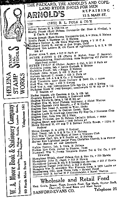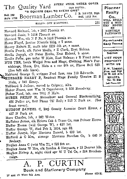 In fact, as the following collection of images from the Helena City Directory between 1914-1922 shows, Harry Ross Hubbard was a struggling white-collar clerk, drifting from job to job, trying to make ends meet. He had served four years in the US Navy between 1904-1908 and re-enlisted in 1917, finally retiring in 1943; he did not become a Lieutenant Commander (note: NOT a full Commander, as Ron claimed!) until 1934.